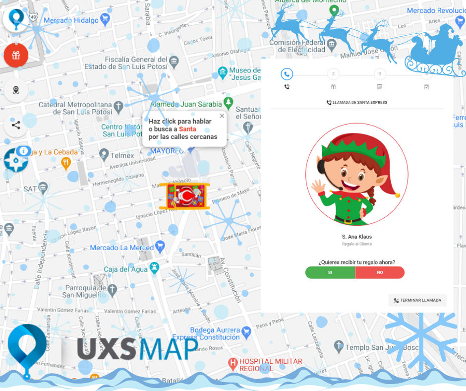Nuestra colaboración más grande hasta ahora ha sido con el equipo de «Santa» y «Santa Express», durante los dos últimos años que hemos estado en contacto, el mapa de ubicación de Santa ha ido evolucionando y cada vez tendrá más curiosidades.